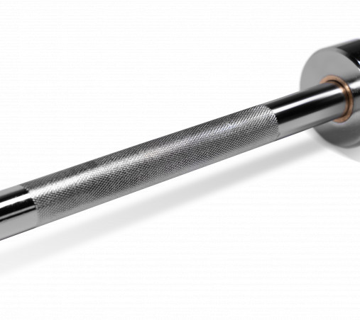Усиленный гриф с максимальной нагрузкой 320 кг. Яркий цвет стали, нескользящие насечки для прочного хвата. Диаметр центральной части грифа - 28 мм. Замки в комплект не входят.