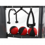 - Многофункциональность: перекладины с несколькими точками хвата позволяют выполнять упражнения под разными углами, что расширяет спектр возможностей тренировок. Иллюстрированные таблички помогают правильно выполнять движения и наглядно показывают целевые группы мышц.